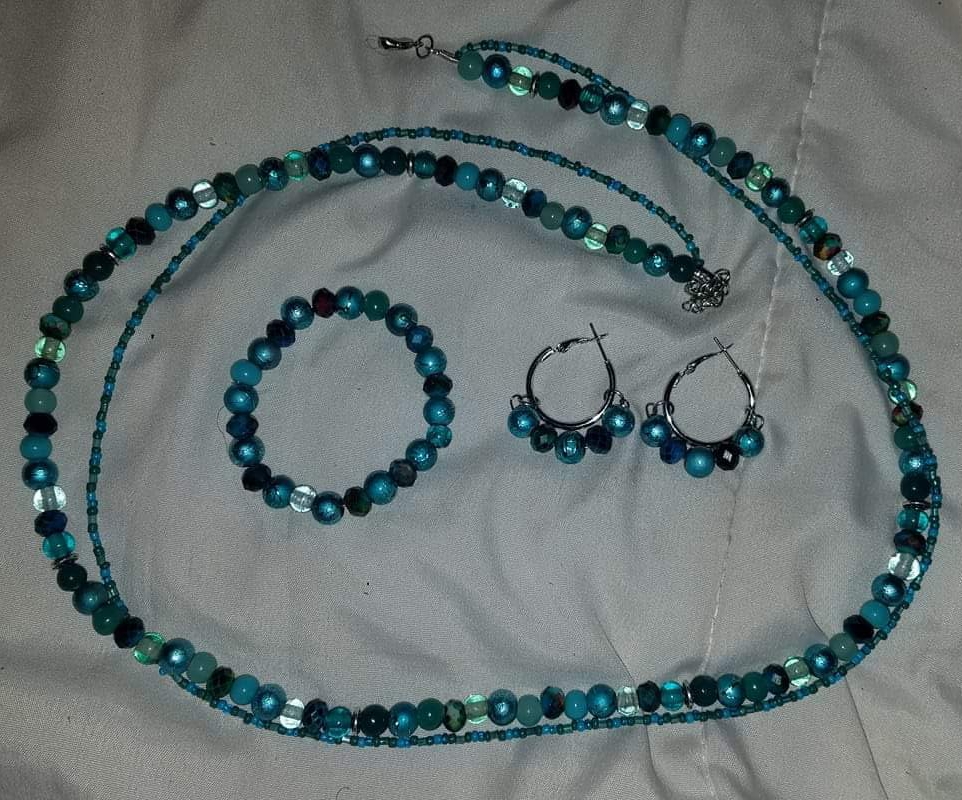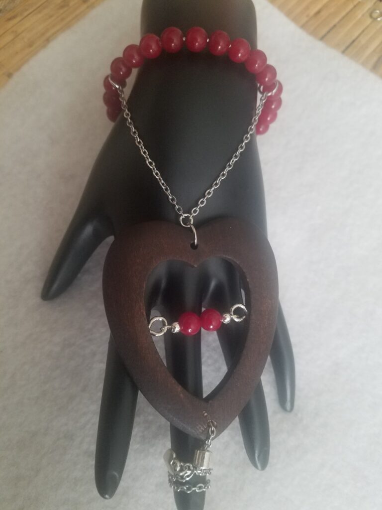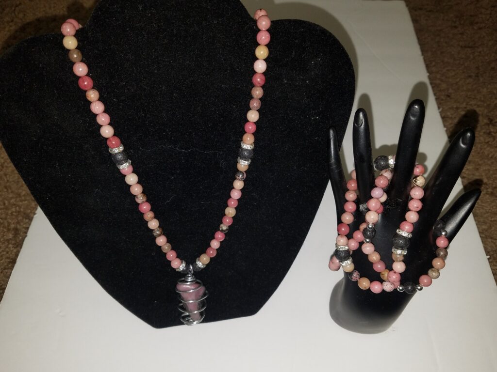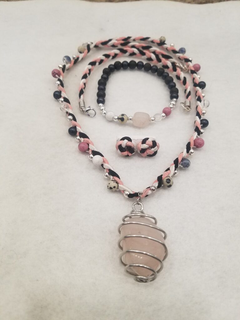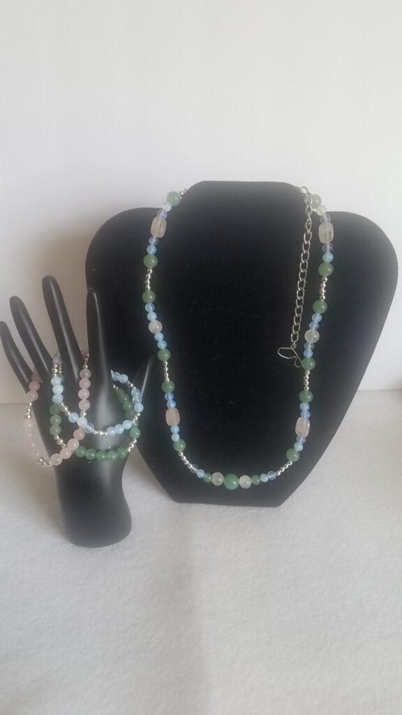 Opal, Rose Quartz and Aventurine necklace & 3 bracelet set